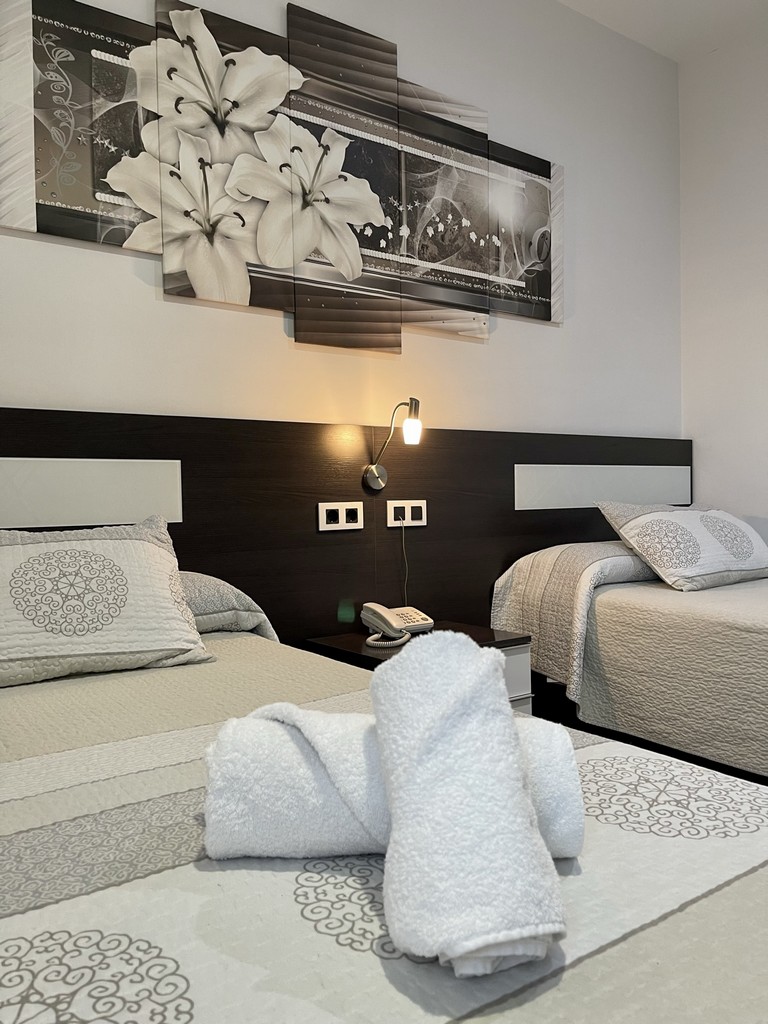 Espaciosa habitación de dos camas individuales o cama matrimonial, para que nuestros huéspedes disfruten de un descanso óptimo.